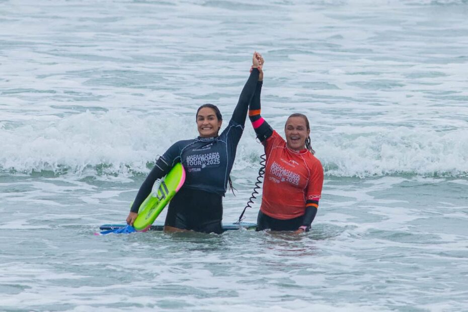 A etapa decisiva do Circuito Catarinense de Bodyboarding 2025 terminou com um momento de muita emoção nas ondas da Prainha, em São Francisco do Sul. Pela primeira vez na história da modalidade, mãe e filha fizeram uma final juntas. As capixabas campeãs mundiais Neymara Carvalho e Luna Hardman entraram no mar em busca da vitória na categoria Profissional Feminina. E o primeiro lugar ficou com a filha Luna, destaque da nova geração, que encerrou sua participação com uma onda em que recebeu a nota 9.5.