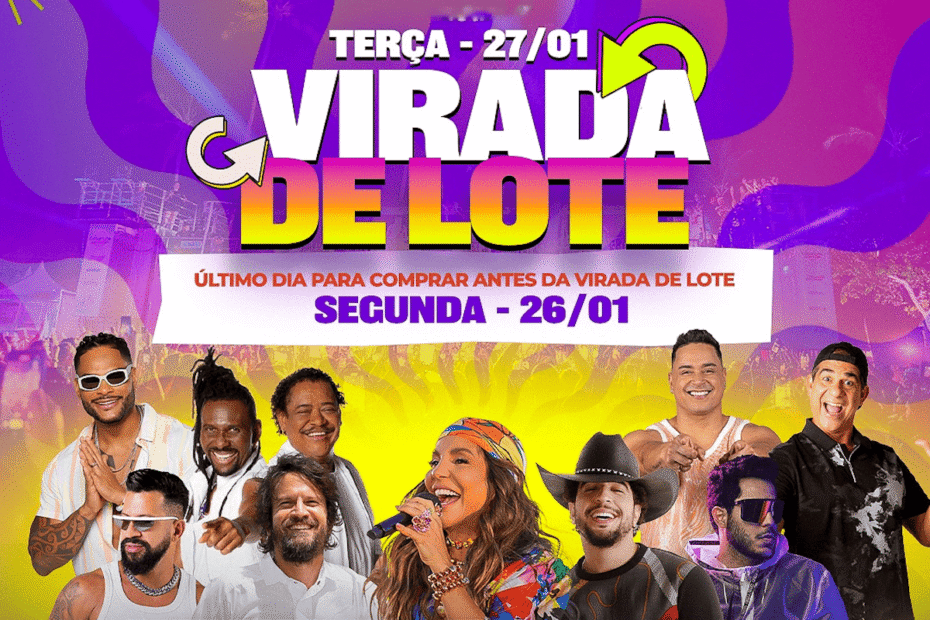 Dia 27 de janeiro teremos virada de lote do Carnaporto Axé Moi 2026. Você tem até o dia 26 de janeiro para garantir o seu no valor do lote atual.