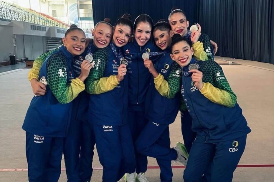 A seleção brasileira de conjunto subiu ao pódio novamente nesse domingo (19) na etapa de Baku, no Azerbaijão, da Copa do Mundo, conquistando a medalha de prata na série de cinco bolas. A capixaba Sofia Madeira integrou o quinteto que obteve nota 26.350 na final, superada apenas pelo conjunto israelense, campeão com 26.650 pontos. O Uzbequistão completou o pódio com o bronze, somando 25.450.