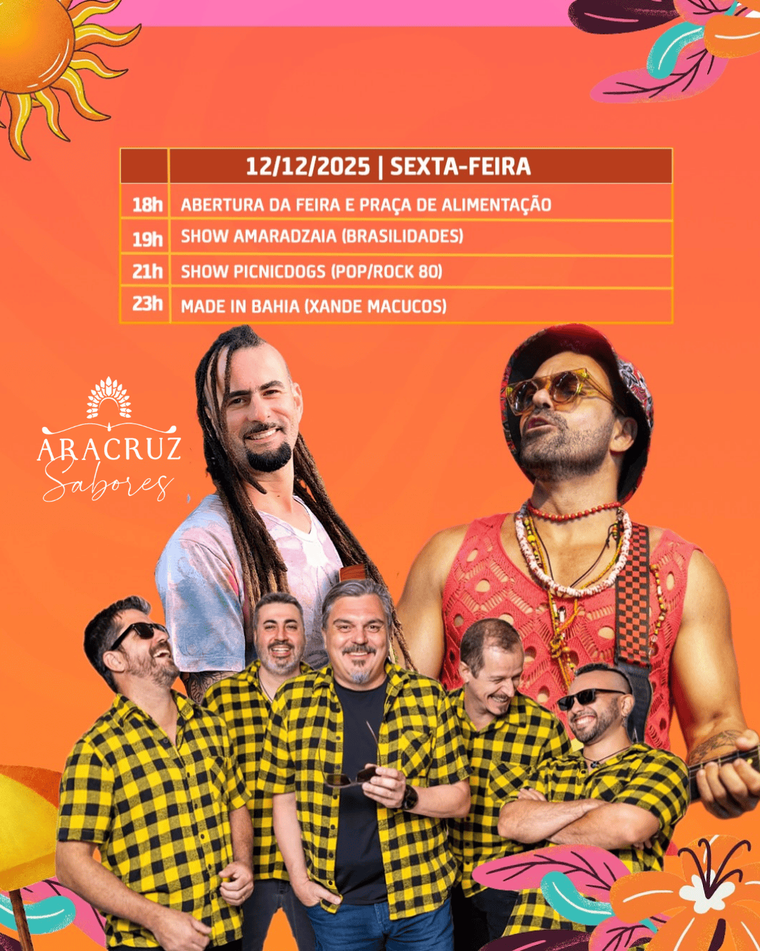 Prepare-se para três dias de muita música, gastronomia e arte! O evento contará com: