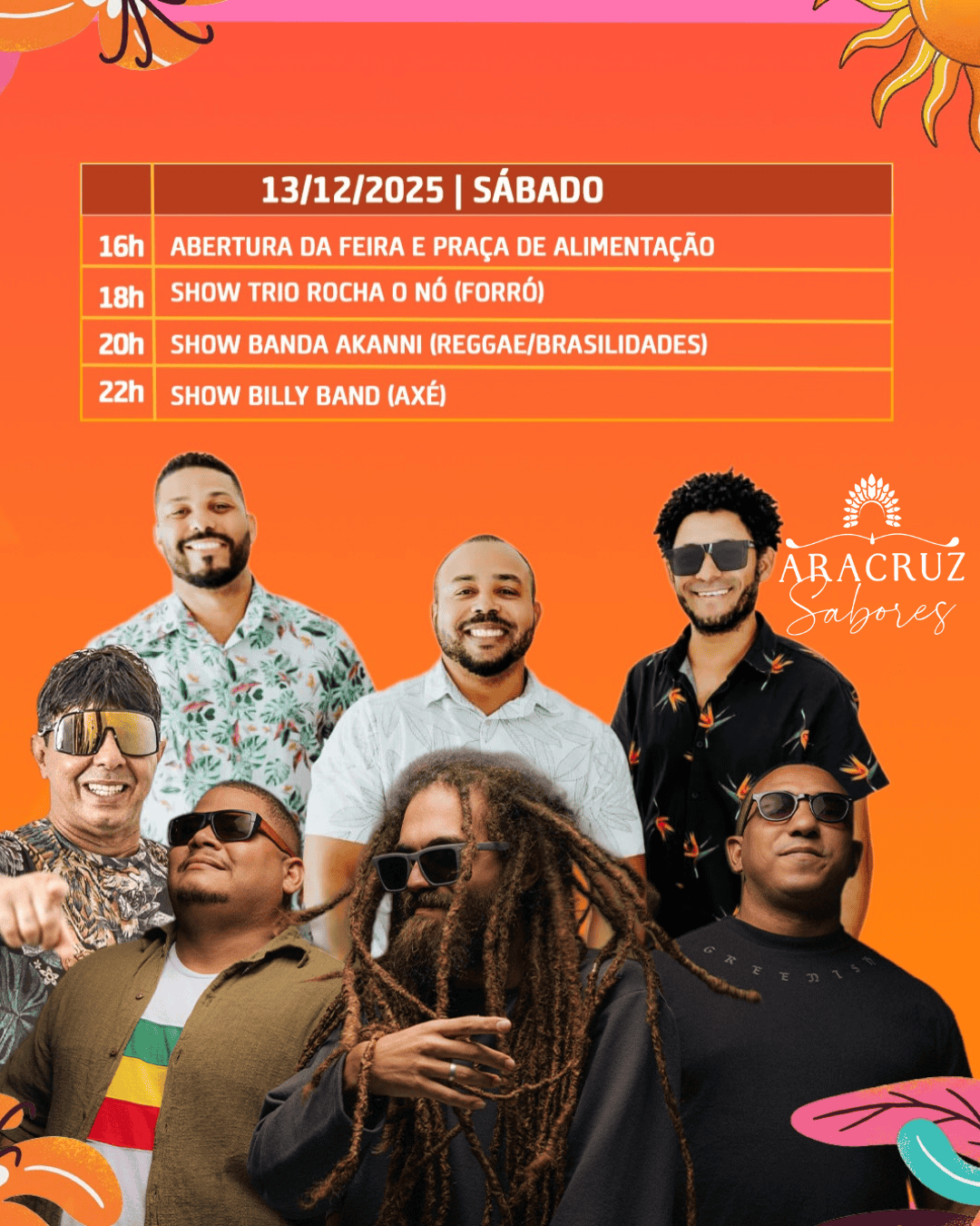 Prepare-se para três dias de muita música, gastronomia e arte! O evento contará com: