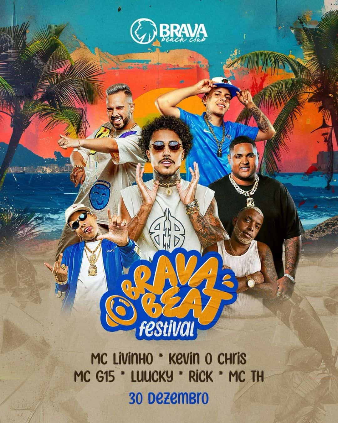 O Brava Beat Festival chega para agitar o penúltimo dia do ano com o melhor do funk nacional. O line-up de peso conta com hitmakers como MC Livinho, Kevin O Chris, MC G15 e Rick, garantindo uma noite de batidas envolventes e muita dança. Este evento é focado na alta energia e nos sucessos que dominam as paradas, preparando o público para a virada de ano com o astral lá em cima.