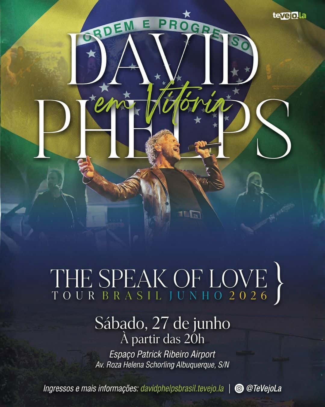 Após sete anos, o premiado cantor cristão David Phelps retorna ao Brasil com a turnê “The Speak Of Love Tour” para uma apresentação no Espírito Santo. Conhecido por sua impressionante extensão vocal e álbuns que já alcançaram o topo da Billboard, o ex-integrante do Gaither Vocal Band tem show confirmado para o sábado, 27 de junho, no Espaço Patrick Ribeiro Airport, em Vitória.