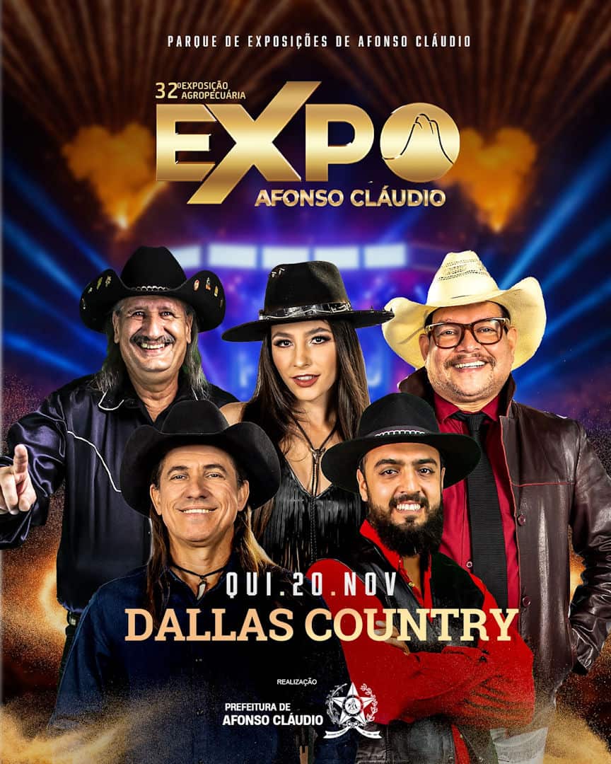 Quinta-feira (20/11): Tem Dallas Country abrindo com tudo a Expo Afonso Cláudio 2025