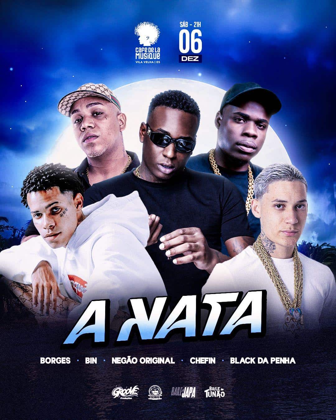 A cena do funk e do trap nacional tem um encontro de peso marcado no Espírito Santo. No dia 6 de dezembro, um sábado, o Cafe de la Musique em Vila Velha recebe a festa “A NATA”, que reunirá em um único palco os artistas Chefin, Borges, Bin, MC Nego Original e MC Black da Penha. O evento tem início programado para as 21h.