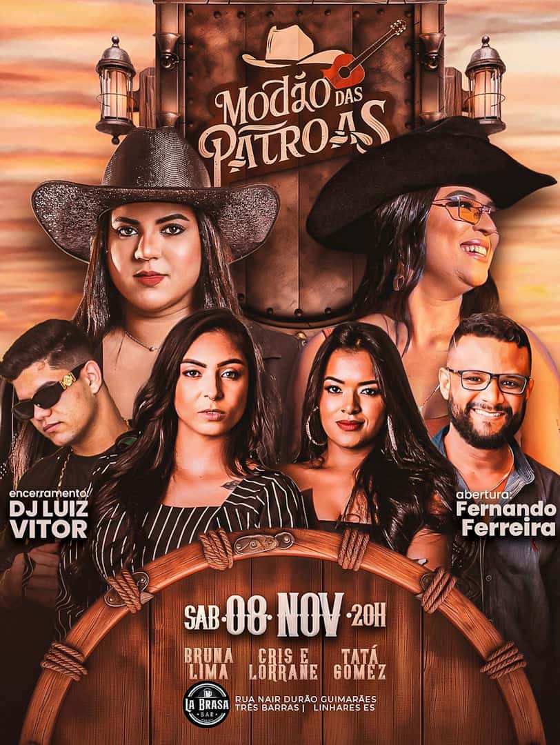 O La Brasa apresenta o Modão das Patroas, uma noite dedicada às vozes potentes que vão fazer todo mundo cantar junto. Se liga nesse time de peso: