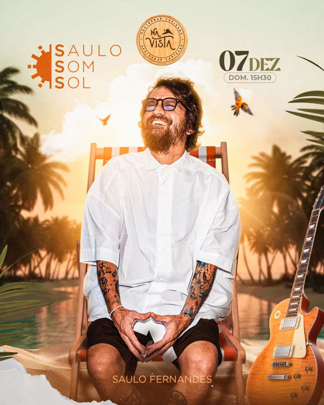 No domingo, dia 07 de dezembro, Saulo Fernandes traz o calor da Bahia para Vitória com o projeto “Saulo Som Sol”, criando um entardecer mágico e vibrante no Na Vista. A proposta é oferecer uma experiência sensorial intensa, misturando a percussão marcante do axé, o suor da dança e a alegria contagiante em um clima de pré-verão descontraído. O evento, que começa às 15h30, convida o público a curtir um show ao vivo intimista e ensolarado, ideal para quem busca boas energias e música de qualidade à beira da baía.