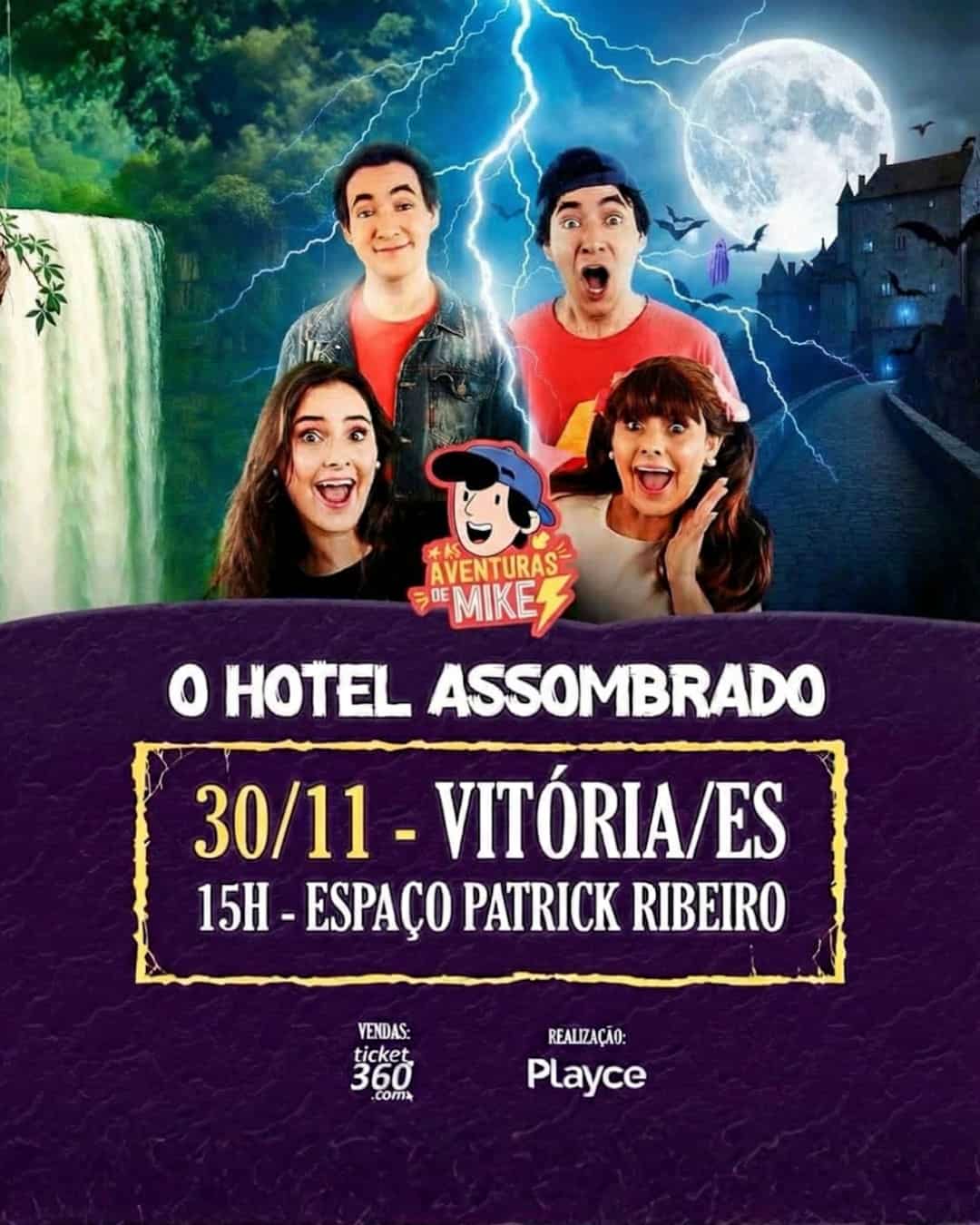 O universo de “As Aventuras de Mike” ganha vida nos palcos de Vitória com a peça de teatro “O Hotel Assombrado!”. A comédia, voltada para todas as idades, será apresentada no dia 30 de novembro (domingo), às 15h, no Espaço Patrick Ribeiro, prometendo uma tarde de entretenimento e muitas risadas para as famílias.