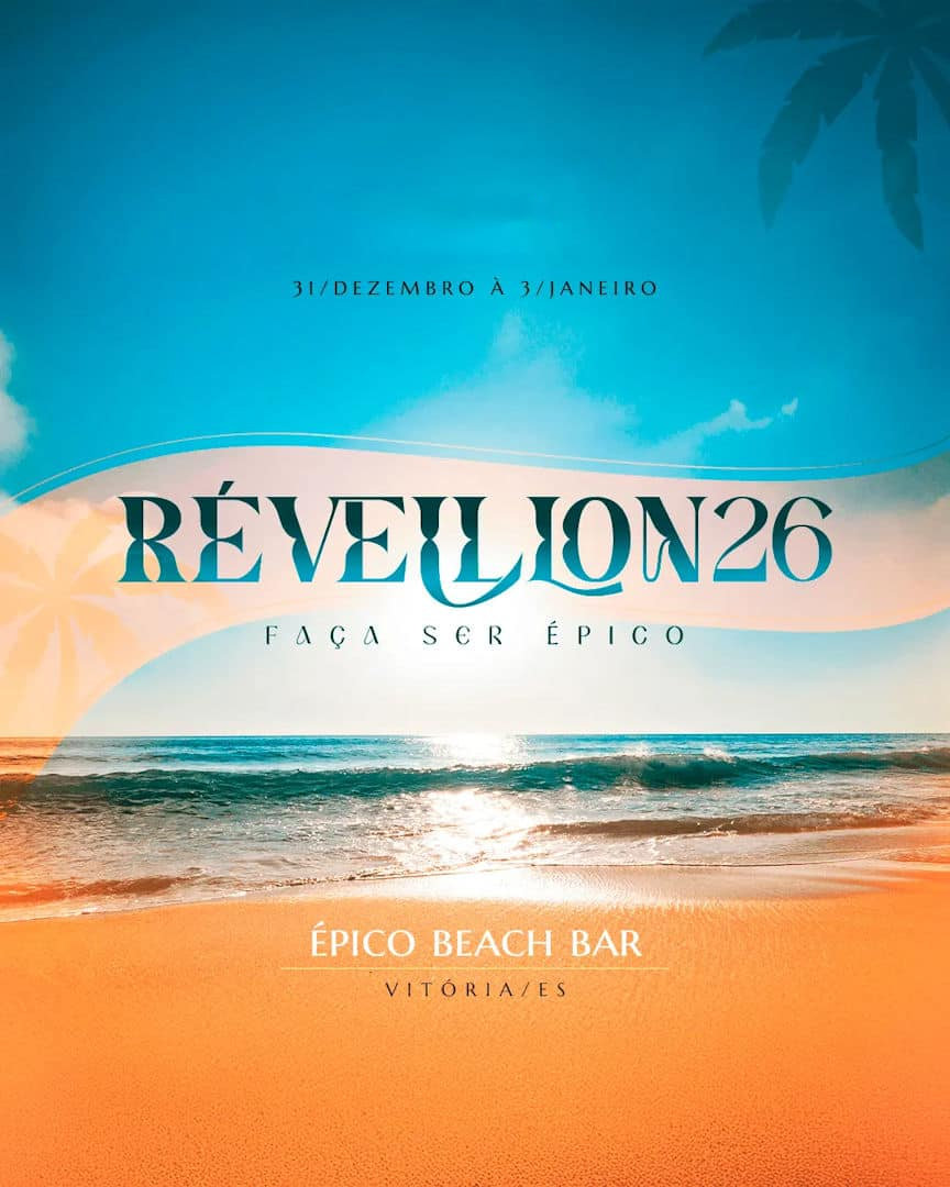 O Épico Beach Bar anunciou sua festa para a virada do ano, o Réveillon Épico 2026. Com a promessa de um “clima intimista” e “pé na areia”, o evento oferecerá ao público oito horas de serviço All Inclusive, começando as 22 horas no dia 31 de dezembro.