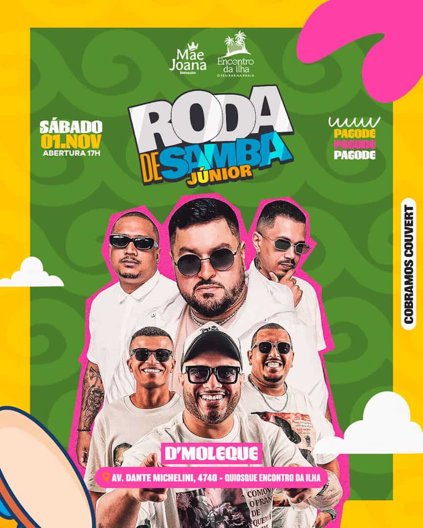 Prepare-se: neste sábado, a boa é curtir Roda de Samba Jr + D’Moleque lá na Mãe Joana, em Vitória.