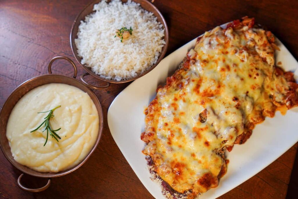 Prato 2: Parmegiana – Filé mignon à parmegiana acompanhado com massa (espaguete ou fettuccine)