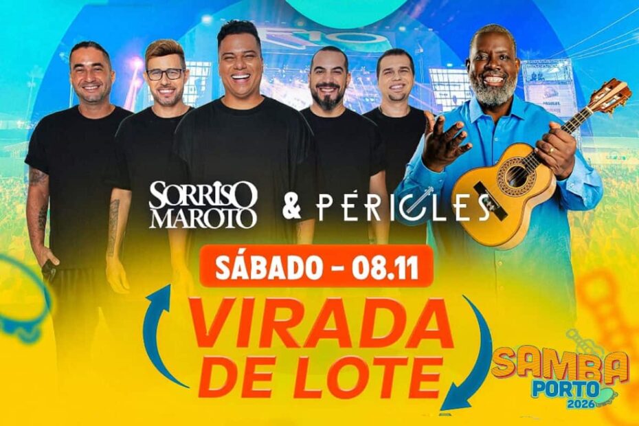 Você tem até o dia 07 de novembro para comprar, a preço de primeiro lote, seu ingresso para o SAMBA PORTO 2026! Essa festa incrível que acontecerá na Arena Axé Moi, em Porto Seguro – BA. Uma noite de muito pagode para você aproveitar!