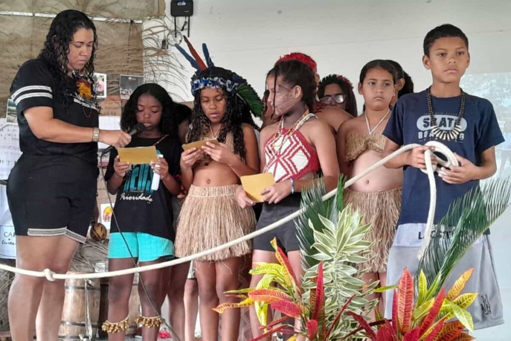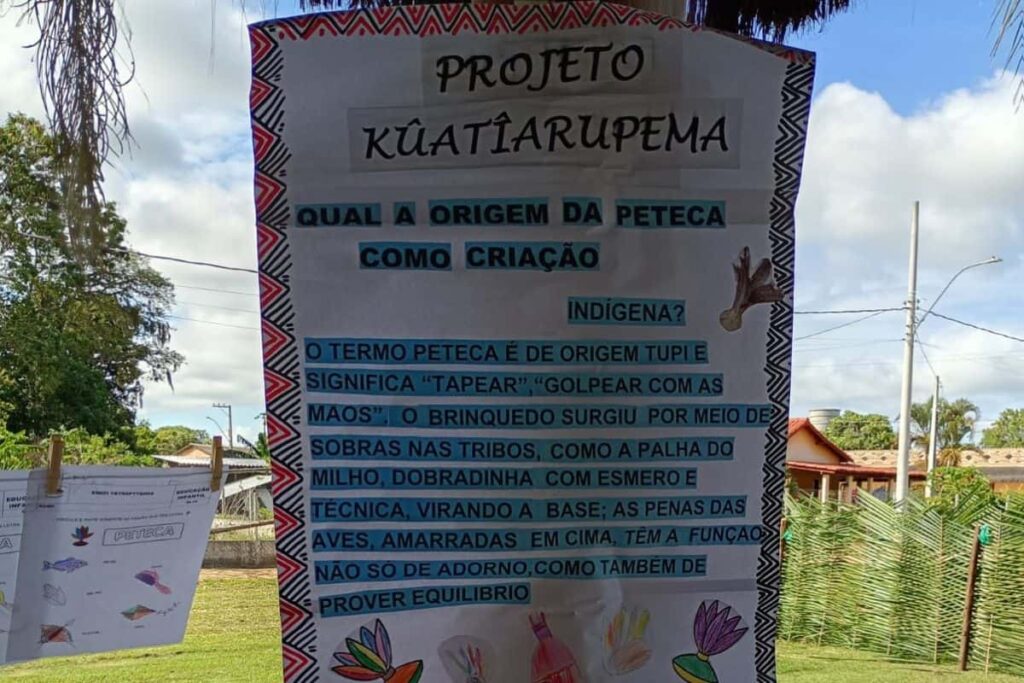 A Escola Municipal de Ensino Fundamental Indígena (Emefi) Ybyrapytanga, aldeia Pau-Brasil, promoveu na manhã deste sábado (29), na cabana central, a 4ª edição do Projeto Kûatiarupema (Peneira Literária), que é uma extensão do “Comunidade de Leitores”. Neste ano, a escola promoveu em sua culminância, os “Abá Nhemosaraîva” (Jogos Tradicionais Indígenas), com as turmas apresentando como foram desenvolvidas a prática de cada modalidade, e a confecção dos materiais usados.