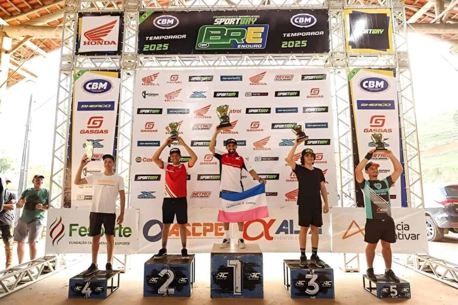 Flávio Volpi, que foi aprovado no Bolsa Atleta 2025 e já foi contemplado em edições anteriores do programa, conquistou o 1º lugar na categoria Enduro E4 e 3º lugar no Geral Open, trazendo as medalhas de ouro e bronze para casa.