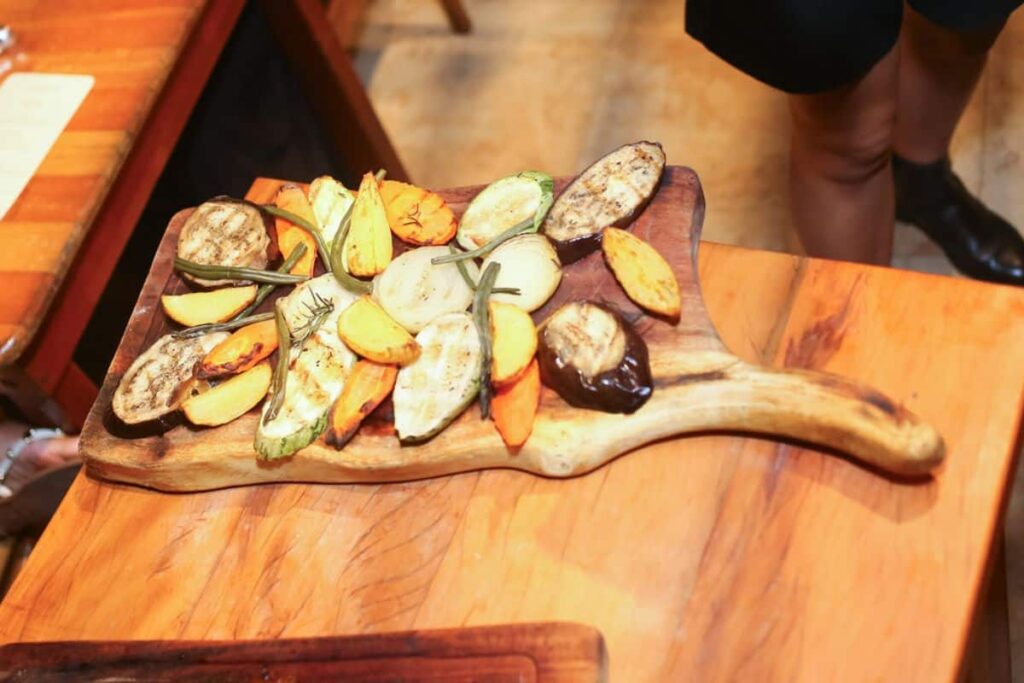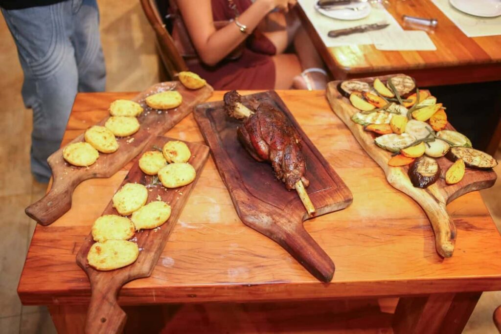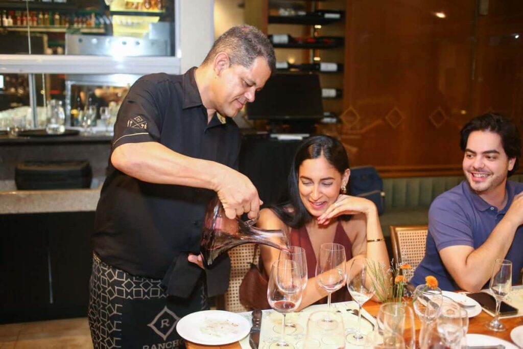O ponto alto da noite foi a degustação guiada de carnes premium da Frisa. Foram servidos cortes como picanha argentina, ancho black, prime steak e o tradicional pernil de cordeiro da casa. Cada etapa foi acompanhada por vinhos selecionados pela Carpe Diem, apresentando alternativas que fugiram do óbvio para harmonizar com o churrasco.