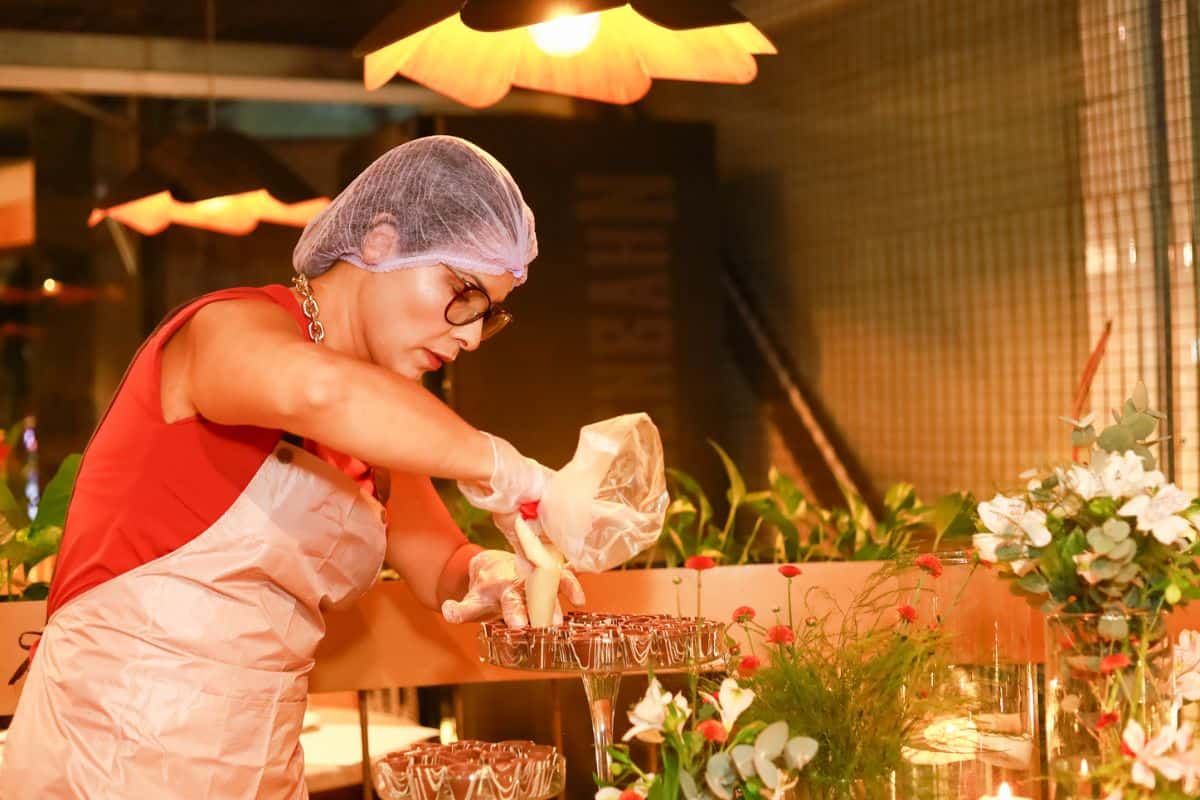 O encerramento ficou por conta de uma colaboração entre a Le Chocolatier e a Marali Doces Gourmet. Foram servidas sobremesas funcionais e sem açúcar, como banoffee e cheesecake de pistache, provando que a sofisticação e a leveza podem caminhar juntas após uma refeição robusta.