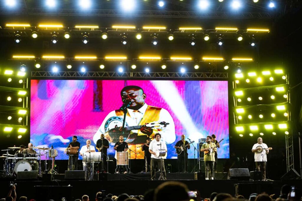 Na sequência, o Fundo de Quintal colocou todo mundo para cantar os sambas que atravessaram gerações, como “A Amizade” e “O Show Tem Que Continuar”. “Só temos a agradecer. A gente fica feliz com essa troca com o público. Fizemos um show para todo mundo sambar. Foi um show leve, onde as românticas fizeram a galera sambar”, disse Junior Itaguay.
