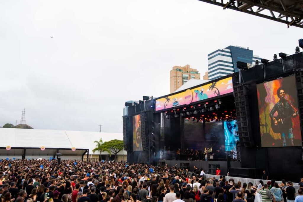 O público começou a se concentrar logo no fim da manhã, quando os portões foram abertos, e não se deixou abalar nem pela chuva que caiu em alguns momentos da tarde e da noite. Em clima de festival, o evento seguiu tranquilo e cheio de boas energias — como se cada gota d’água servisse de combustível para o coro das milhares de vozes que ecoavam pela Enseada do Suá.