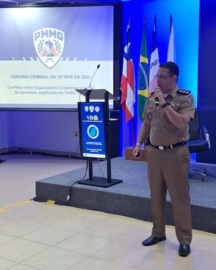 Representando a Polícia Militar de Minas Gerais (PMMG), o Coronel Emiliano Lages Ferreira, também esteve presente e apresentou estratégias de atuação em seu estado, principalmente no município de Teófilo Otoni.