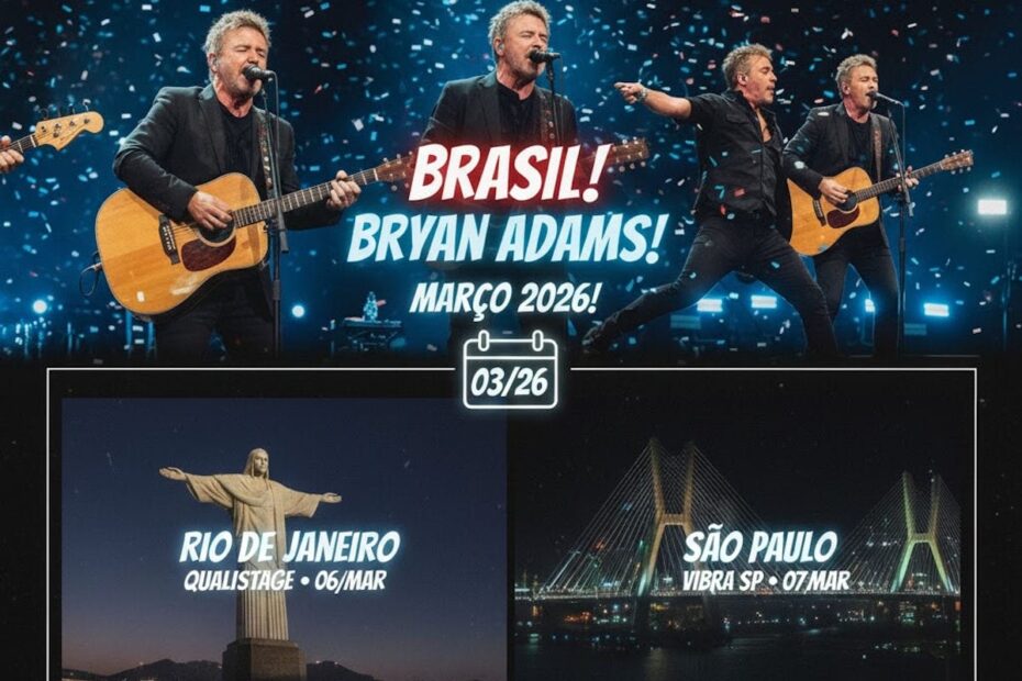 O público brasileiro já pode garantir seu lugar para ver o ícone do rock Bryan Adams. O cantor canadense confirmou sua vinda ao país com… Read More »Ícone do Rock Bryan Adams Aterrissa em SP e RJ em Março de 2026; Vendas de Ingressos Estão Abertas