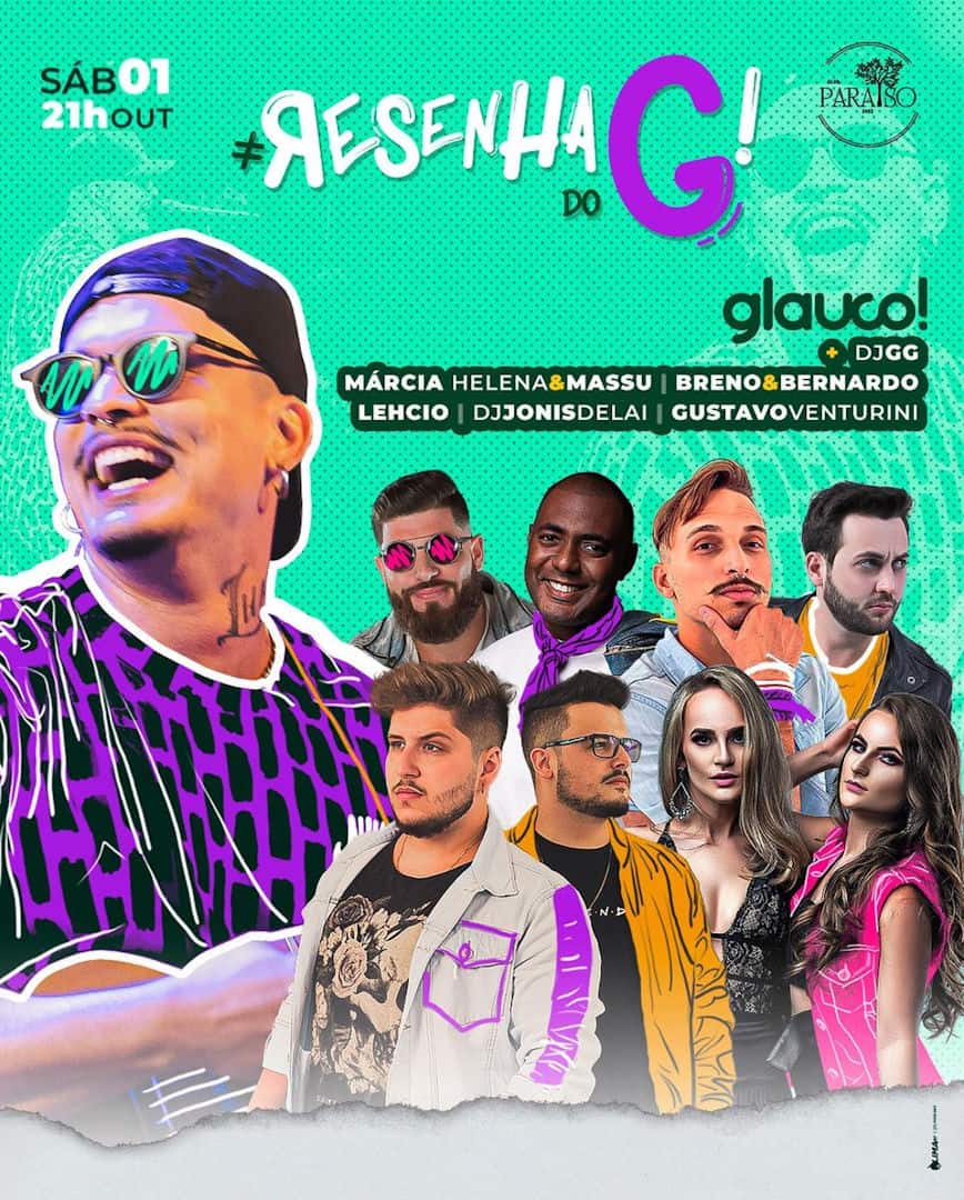 Com os shows de Glauco, Breno e Bernardo, DJ GG, Márcia Helena & Massu, Gustavo Venturini e Lehcio Soares. Ingresso Online: Onticket