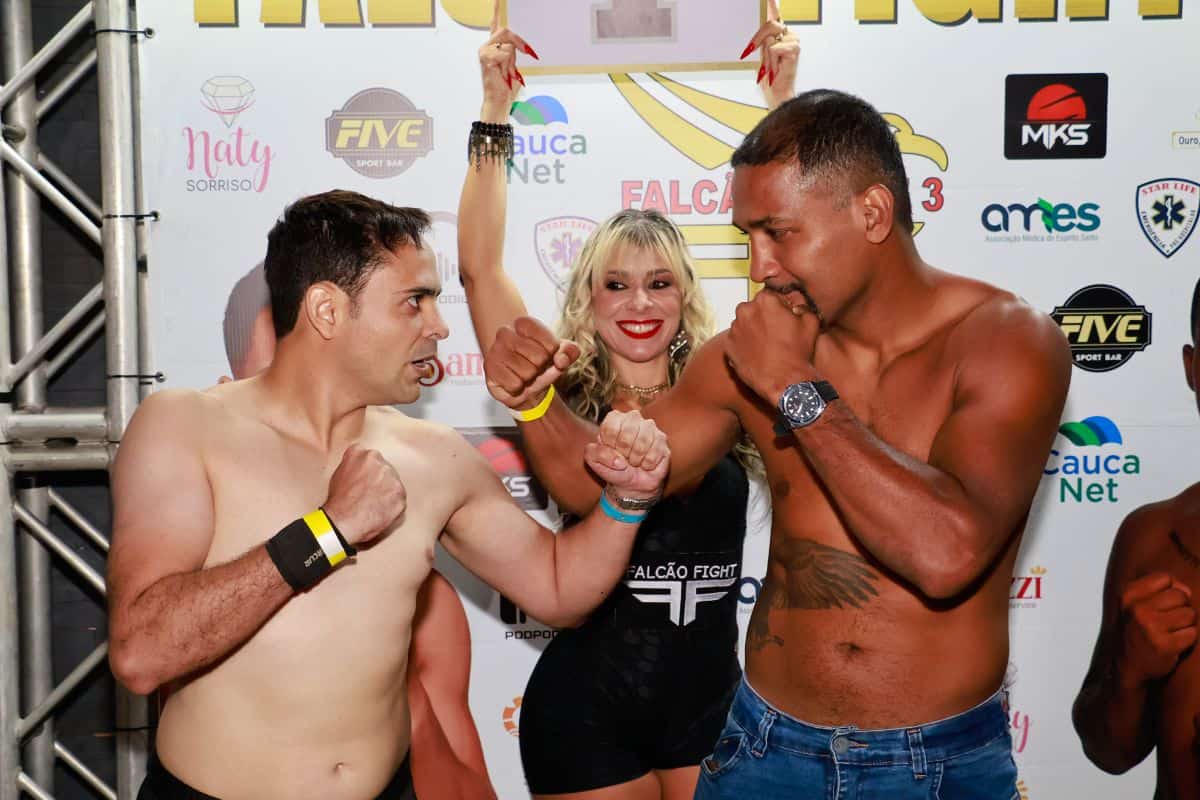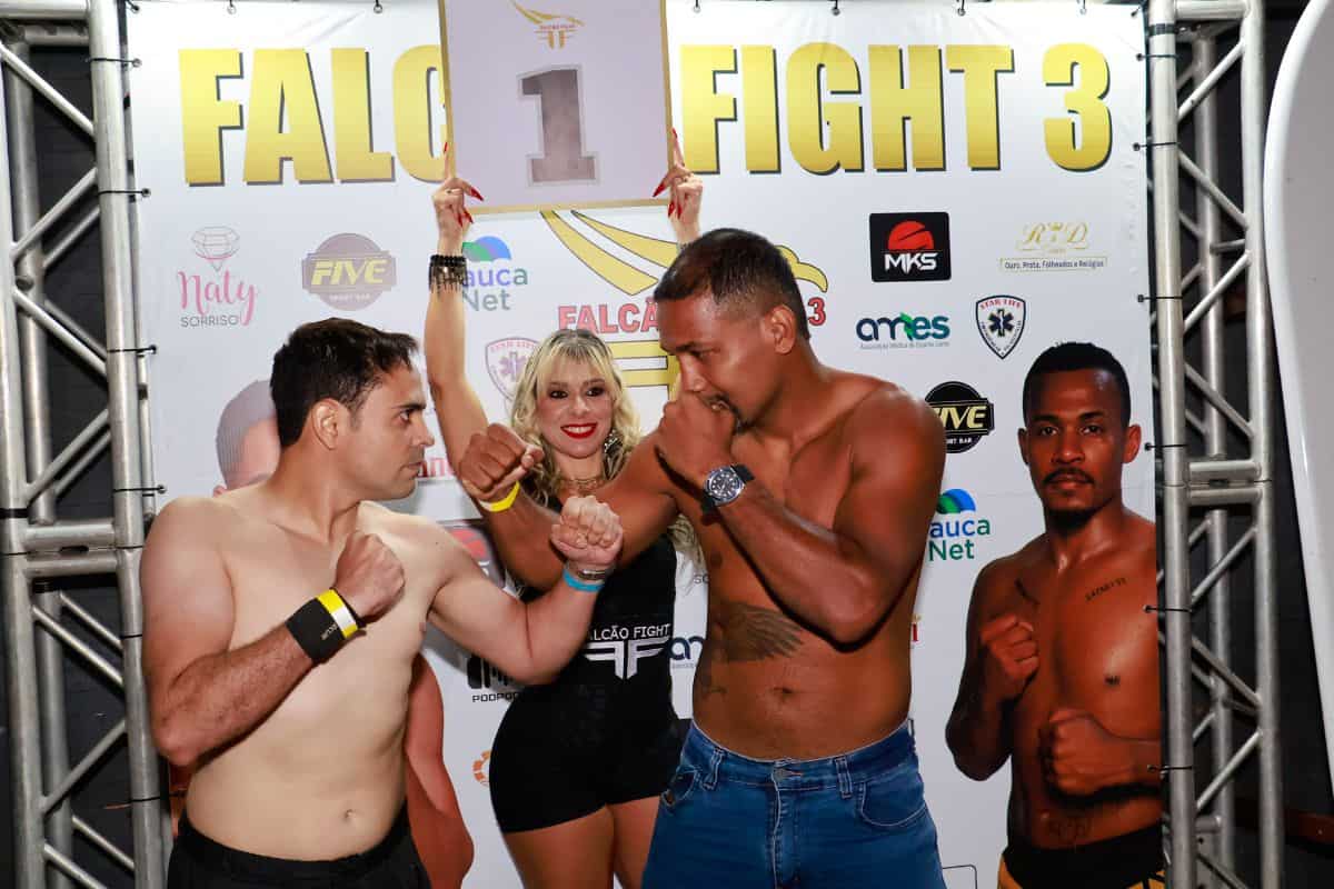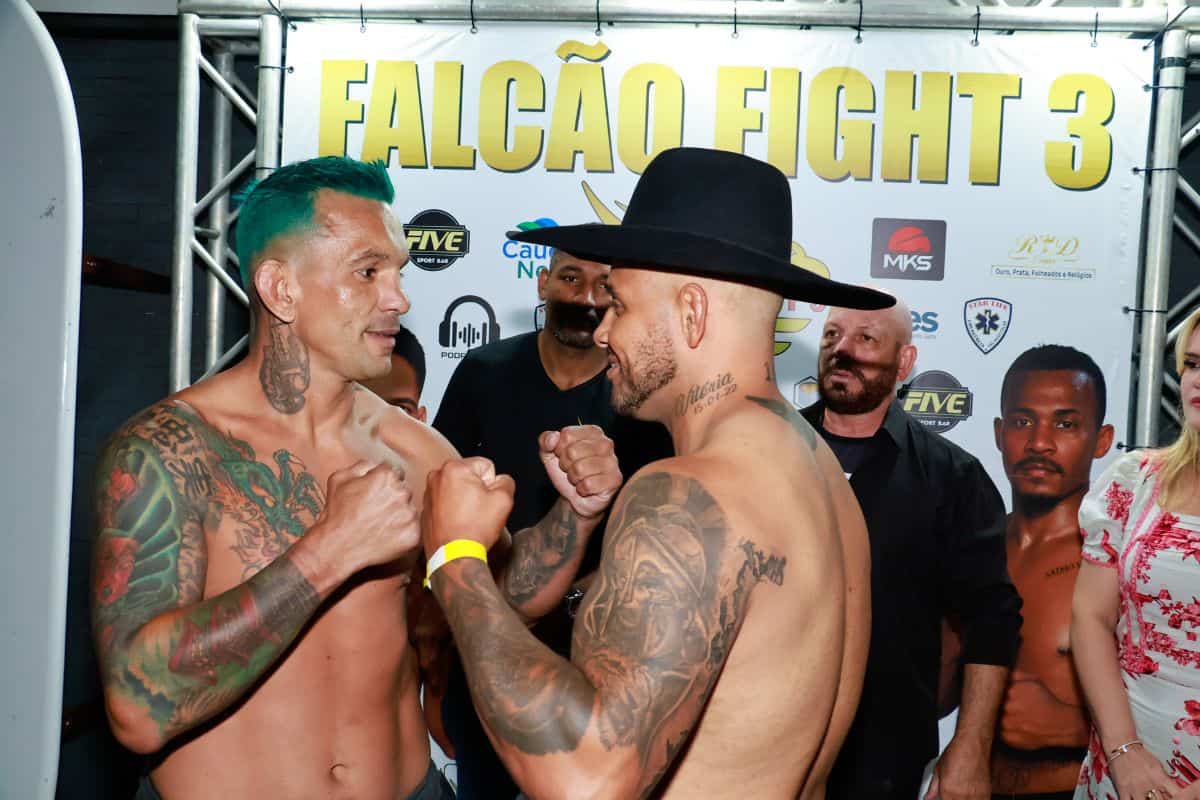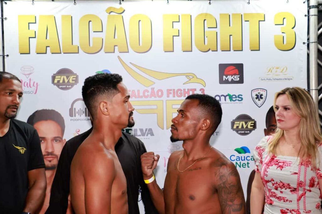 A pesagem oficial do Falcão Fight 3, realizada nesta sexta-feira (24) no Shopping Vitória, preparou o terreno para os combates que acontecem amanhã na Arena Jacaraípe, na Serra. O evento foi marcado por encaradas intensas entre os atletas do card principal e celebrou a renovação do boxe no Espírito Santo.